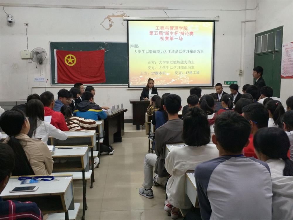 唇枪舌剑,辩赛场硝烟;口若悬河,理是非曲直。2017年10月22日晚上6点,工程与管理学院于英华楼3407教室举行第五届“新生杯”辩论赛初赛;我院各班积极响应参与到本次比赛中来,出席此次比赛的评委有我院团总支学生分会副主席李文杰、李品榕,书记助理万欢福,校级最佳辩手孙铭浩、陈守双,优秀辩手李楚赟、肖肖、周伟立。担任本次辩论赛的主席为学习部干事柴娟娟。