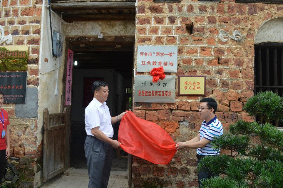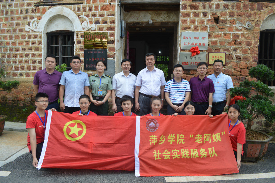 为进一步完善大学生党建工作体系和有效促进学生思想政治教育活动。2017年7月10日上午,萍乡学院思想政治教育副教授、副院长郭伟,萍乡学院党委委员、宣传统战部部长陈永国,校团委副书记谢伟萍于莲花县甘祖昌干部学院举行萍乡学院“思想政治教育实训基地”挂牌仪式。莲花县委常委、组织部部长林俊江,荷塘乡党委副书记朱金权,甘祖昌干部学院部分领导及工程与管理学院“老阿姨”社会实践服务队志愿者共计20余人参加此次挂牌仪式。