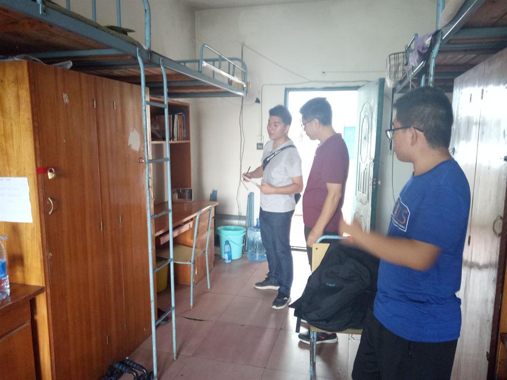 飘然而至的飒爽秋风拉开了新学期的帷幕,为了更好的了解新学期学生宿舍卫生、安全情况,2017年9月3日下午四点,工程与管理学院党总支书记刘根林、学生党支部书记谢启斌在学生分会主席高梓威、副主席李品榕的陪同下,来到我院学生宿舍开展宿舍卫生、安全检查,并对学生在校的学习、生活等情况进行了详细了解。