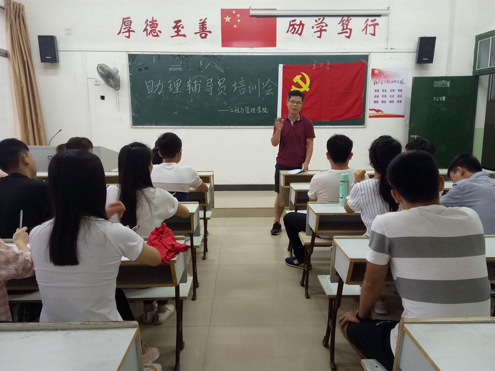 为使助理辅导员了解自身职责,提前进入角色,做好2017级新生的学习培训工作,2017年9月6日晚6点,工程与管理学院于英华楼3209教室召开新生助理辅导员培训会。我院团总支书记朱敏、新生辅导员谢启斌老师、2017级各班班主任及助理辅导员参加会议,此次会议由新生辅导员谢启斌老师主持。