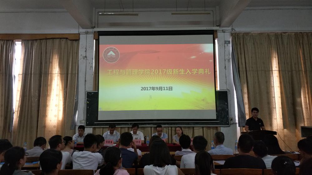朗朗金秋,丹桂飘香。2017年9月11日下午,萍乡学院工程与管理学院2017级新生入学典礼在跬步楼1101教室隆重举行。我院党总支书记刘根林、院长李良松、党总支副书记汤中友、副院长彭友花、团总支书记朱敏、学生党支部书记谢启斌及我院全体辅导员与教师出席典礼。我院2017级359名全体新生参加入学典礼,此次典礼由朱敏老师主持!