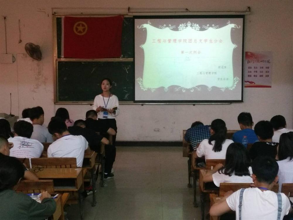 为了让学生分会各部门新生实习干事更好的学习和了解学生分会,2017年10月10日中午12点40,我院于英华楼3206教室召开了工程与管理学院团总支学生分会第一次例会,参加本次会议有我院团总支学生分会全体人员,本次会议主持人为记者站干事乐丽云。