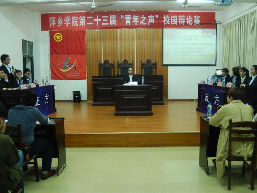 为丰富我校同学们课余生活,营造良好的文化氛围。校团委及思政部主办,校社联承办了萍乡学院第二十三届辩论赛。我院在各位辩手的共同努力下,在初赛和复赛中表现优异,均取得了较好的成绩。
