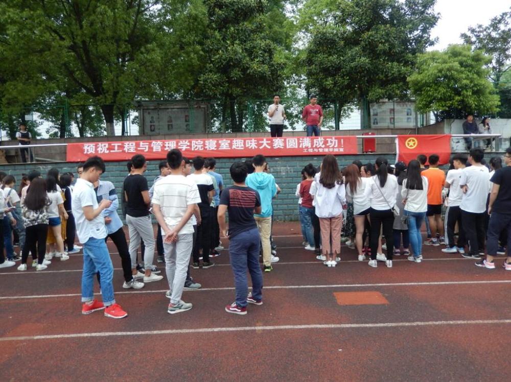 为丰富同学们的课余生活,促进寝室团结。2017年5月5日中午1点,工程与管理学院于萍乡学院田径场开展寝室趣味大赛。共16个寝室参加本次比赛,我院党总支副书记汤中友、辅导员晏少辉莅临现场。
