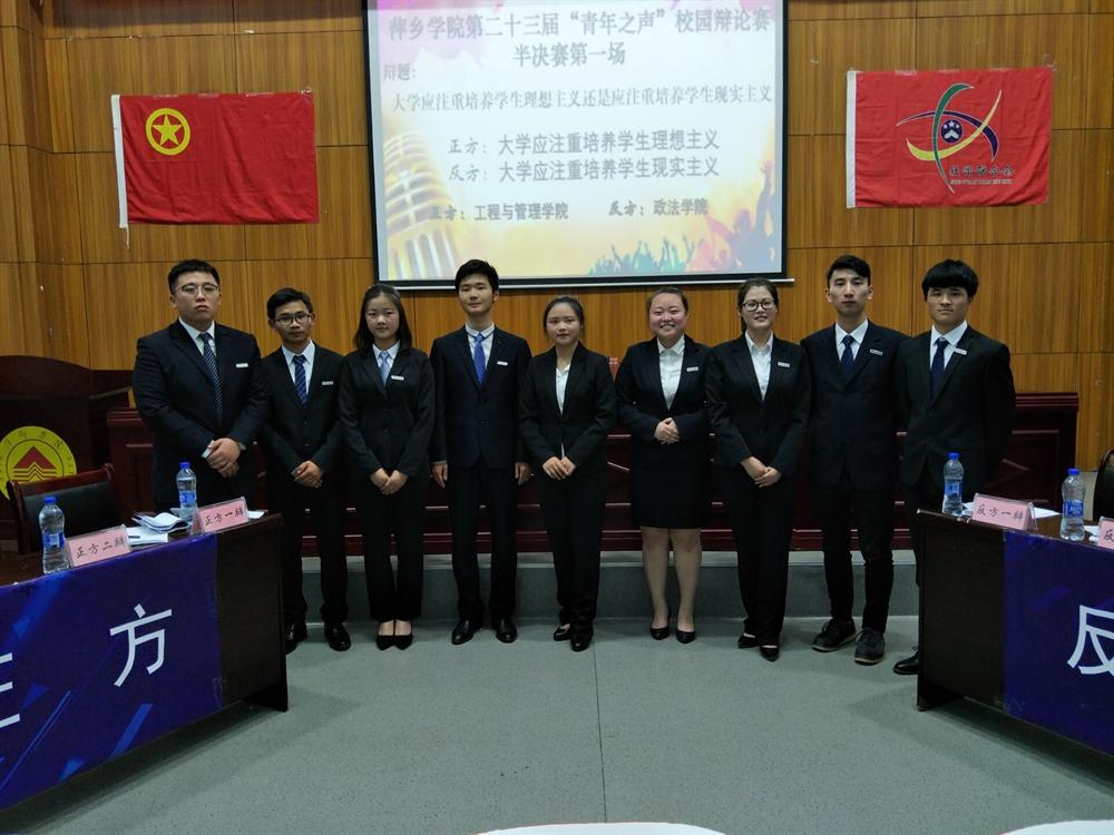 在由校团委、思政部主办,校社联承办的第二十三届“青年之声”校园辩论赛中,我院辩手表现优异,在初赛及复赛的角逐中表现优秀,取得胜利,成功进入半决赛。