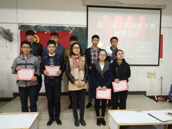 工程与管理学院于2016年11月9日中午12点40,在英华楼3204教室召开工程技能大赛颁奖仪式及工程技能协会交接工作,出席本次会议的有我院团总支书记朱敏老师,研究室主任尹海文老师及李琪老师。本次会议由15工造1班刘涛主持!