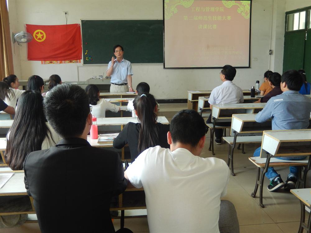 为进一步增强师范生实践应用能力和创新能力,彰显师范特色,强化学生教学技能。2016年6月1日上午9点,工程与管理学院于英华楼3401教室开展了我院第二届师范生技能大赛讲课比赛,出席本次活动的有工程与管理学院院长李良松、党总支书记张石林、副书记汤中友,学生党支部书记谢启斌、班主任文清芝、程丽萍以及我院14级部分同学。本次活动由学习部干事龙雯主持。
