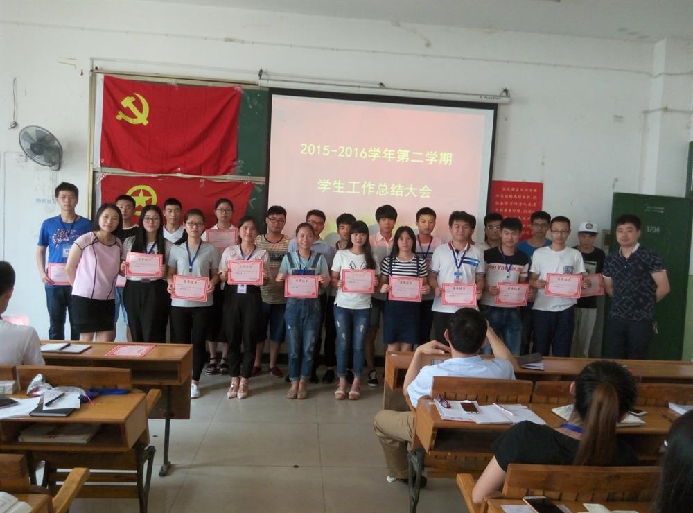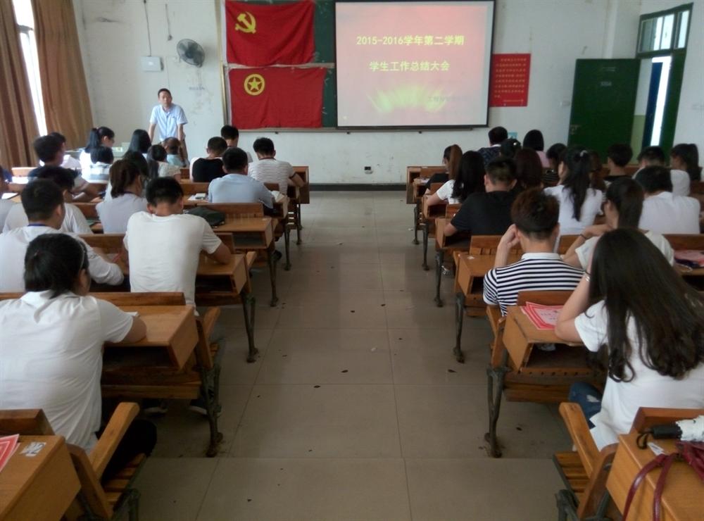 首先,由主持人兰玉对到场的老师一一进行介绍并表示热烈欢迎,大会正式开始,会议第一项议程:由我院学生分会团总支副书记赵容暄对我院团总支在本学期的工作进行了总结,我院认真及时的完成了学校布置的全部工作任务,并认真反省以往工作,也明确了今后的努力方向;会议第二项议程:由学生分会主席兰玉代表我院全体学生干部对本学期学生委员会工作进行了总结,2016年我院学生工作以中国特色社会主义理论为指导,在院党总支、团总支的正确领导下,根据我院实际情况,努力工作,务实创新,推动学校转型发展;会议第三项议程:由我院党总支副书记汤中友、团总支书记朱敏对我院优秀系干及劳动能手进行表彰并颁奖;会议第四项议程:由我院党总支书记张石林对我院这一学期学生工作进行全面总结;他指出,全体学生干部要坚持以人为本的原则,尊重、理解学生的思想,并希望全体学生干部不断努力,进一步提升学生管理、服务工作的水平,为我院的发展作出应有的贡献。最后,会议在同学们热烈的掌声中圆满落下帷幕。