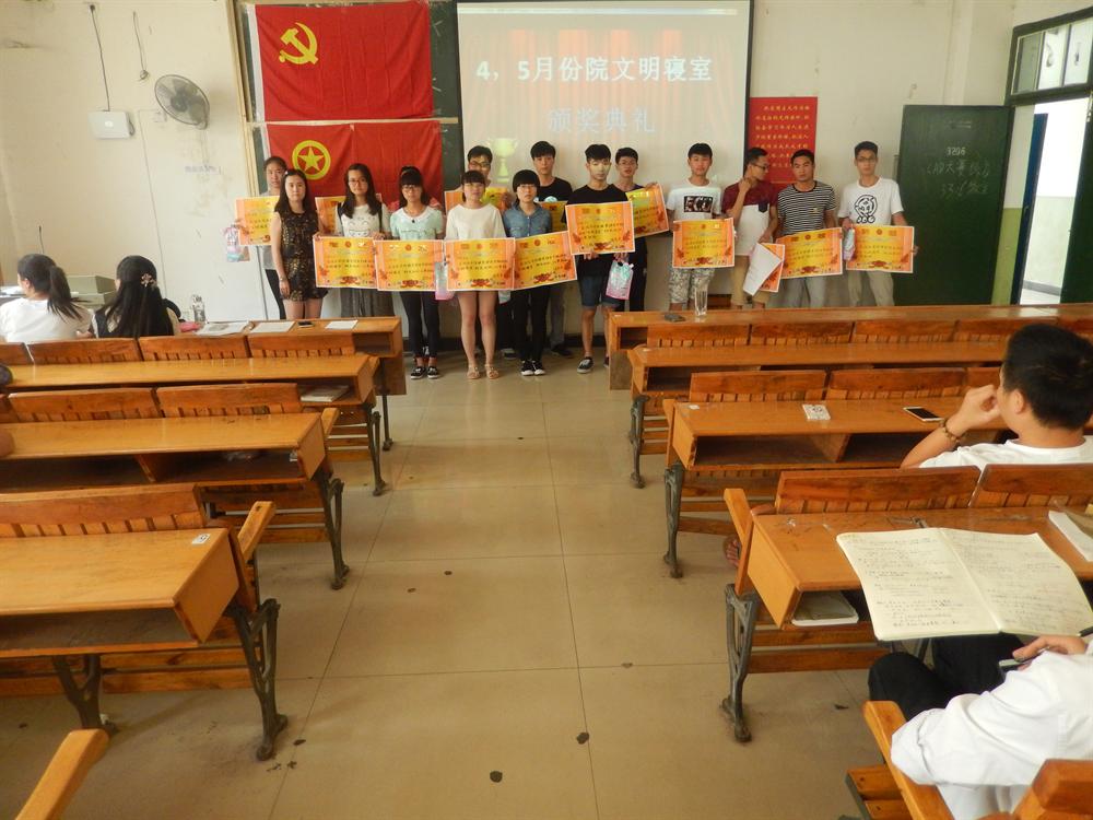 首先,由寝工部干事李远坪和涂金丽分别对本学期寝室管理进行工作总结及作出下学期工作计划,以本学期工作为基础对下学期提出了新的要求,希望在以后的工作中不断改进方法,提高工作效率。紧接着,由徐洁老师为我院四、五月份文明寝室以及两学一做征文、演讲比赛获奖者进行颁奖,并对他们表示祝贺和感谢。随后晏少辉老师强调:学生寝室管理工作是辛苦且乏味的,但是这对于同学们来讲却是极其重要的,而每个寝室管理人员也应该本着从学生中来到学生中去的理念,努力为同学们营造一个温馨的寝室环境。最后,由谢启斌老师为我们做了一个“两学一做”的总结性讲话,他指出,通过在全体党员中开展“学党章党规、学系列讲话,做合格党员”学习教育,全面提升党员队伍思想政治素质,团结带领广大师生,切实做好学院改革、发展各项工作。会议在热烈的掌声中圆满结束。