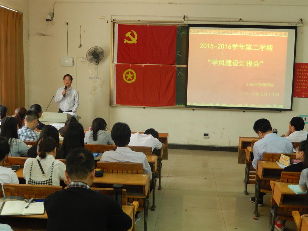 对于2016年,我院迎来更多发展机遇,在这一特殊发展时期,我院召开学风建设汇报会,在于分析工程与管理学院学风的现状,明确下阶段学风建设的目标,更重要的是希望同学们可以树立正确的学习风气,用青春和热情创造出属于自己的灿烂和辉煌!