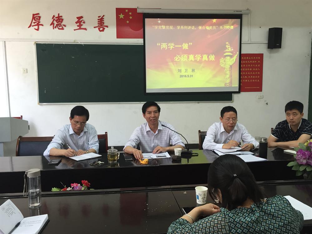 刘卫林同志讲到,“两学一做”的内容和对象,一是学党章党规,二是学习习近平系列重要讲话,做合格党员。“两学一做”的基本要求和根本任务,基础在“学”,关键在“做”。要着力解决五个问题,即解决党员理想信念模糊的问题,解决党员党的意识淡化的问题,解决宗旨观念淡薄的问题,解决精神不正的问题,解决道德行为不端的问题。接下来,刘卫林还讲到“两学一做”的原则与措施有关内容。