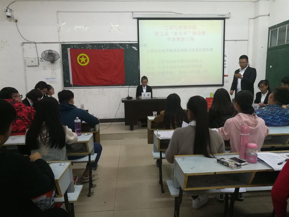 古有卧龙诸葛舌战群儒,今有群英荟萃慷慨陈词。2017年11月16日工程与管理学院新生杯辩论赛半决赛于英华楼3204教室举行。我院各班积极响应参与到本次比赛中来,各班班主任也出席了此次辩论赛,此次比赛的评委有我院团总支学生分会主席高梓威,副主席李文杰、李品榕,书记助理万欢福,万艳春,校级最佳辩手以及优秀辩手。担任本次辩论赛的主席为学习部干事李小玲。