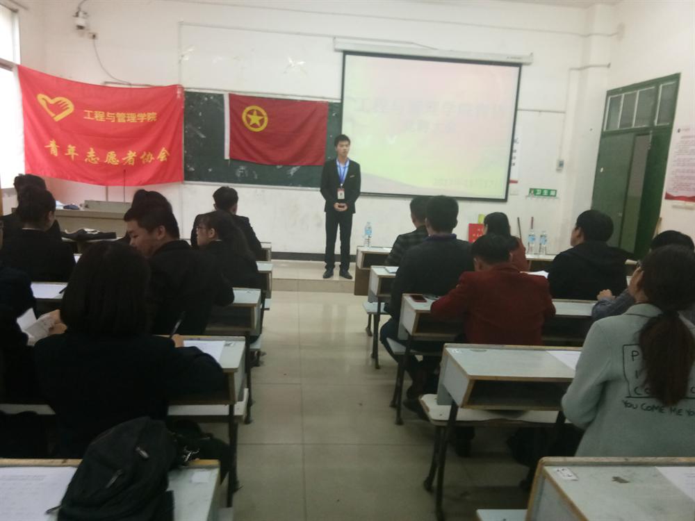 2017年11月17日中午12:30,萍乡学院工程与管理学院青年志愿者协会在英华楼3204举行竞聘大会。参加此次大会的有青协指导老师晏少辉、团总支书记朱敏,工管学院青协理事会成员以及大二的青协干事。