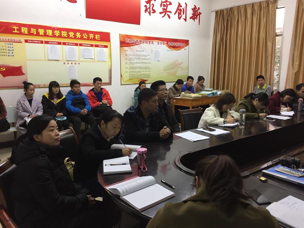 经中共萍乡学院委员会同意,工程与管理学院总支部于2017年11月21日召开了换届选举大会,顺利产生了新一届支委。工程与管理学院党总支共有正式党员29名,出席人员27名,2名党员因事请假。到会人员有校纪委书记潘运华,组织部部长陈永秀。大会由李良松同志主持。
