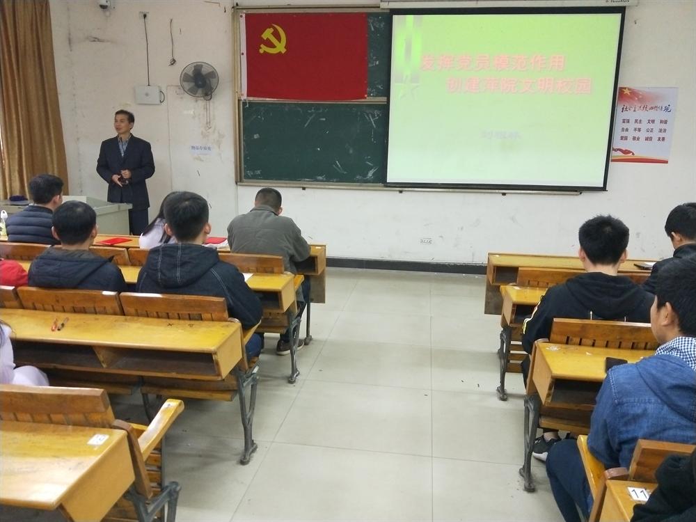 为进一步激发广大党员的荣誉感,责任感和使命感,激励新党员积极投身于学校的改革、建设和发展,投身于党和国家的建设事业。2017年12月7日上午12:30,我院于英华楼3206教室隆重召开学生党支部换届、新党员入党宣誓暨创建文明校园动员大会,出席本次会议有学院党总支书记刘根林,学生党支部书记谢启斌,以及我院正式党员、预备党员和入党积极分子。本次会议由向羽凤主持。