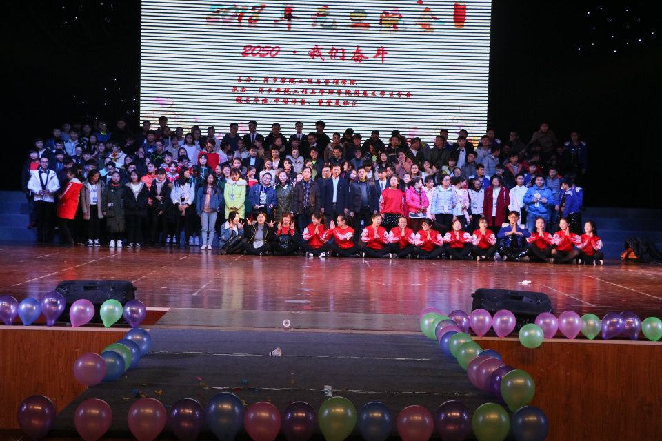 本次晚会在我院党总支书记刘根林热情幽默的致辞下拉开帷幕,魔术+舞蹈的新颖开场活跃了现场气氛。接下来由朱敏老师等的经典歌舞《不忘初心》扣人心弦,我们应响应十九大的号召,不忘初心跟党走。相声《六国封相》和小品《初心赤壁》、《上学那些事儿》风趣的语言幽默的动作认观众捧腹,现场大笑声不断。歌曲串烧《萍院》+《父子》+《红旗飘飘》表达出了我院学子的家国情怀,引人共鸣、惹人深思。青协代表所带来的手语表演《陪你度过漫长岁月》给观众内心带来丝丝温暖。配乐诗朗诵《毛泽东诗词精选》铿锵有力的语言振奋人心,希望同学们能不畏艰难成为今朝之风流人物。最后由我院领导及团总支学生分会执委带来的舞蹈串烧《C哩C哩》+《咖喱咖喱》让晚会在欢乐的气氛中落下帷幕。