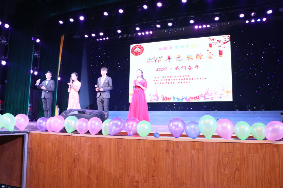 随着2017年的消逝,时光开始了新的旅行,怀着对新年的盼望与敬畏。萍乡学院工程与管理学院2018年元旦晚会于2017年12月20日在音乐厅隆重举行,莅临本次晚会的领导嘉宾有党委委员纪委书记潘运华、校团委书记刘德平、工程与管理学院院长李良松、工程与管理学院党总支书记刘根林、学工处副处长丁勇、校团委副书记谢伟萍、工程与管理学院副院长彭友花、工程与管理学院副书记汤中友。我院全体师生及其他院系学生代表观看了此次晚会。现场人声鼎沸,座无虚席。