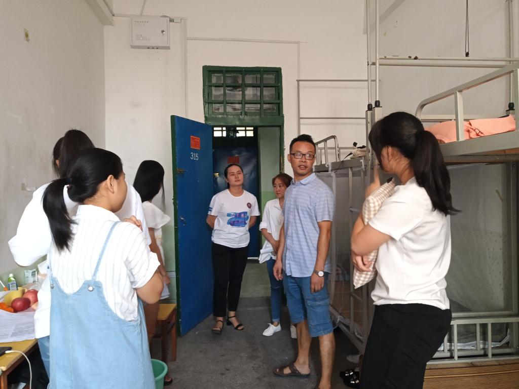 迎新期间,我院领导老师每日带领各班助理辅导员深入学生宿舍,走访看望初来的新生,提醒学生拒绝推销、防止诈骗等安全问题,帮助新生解决生活问题。