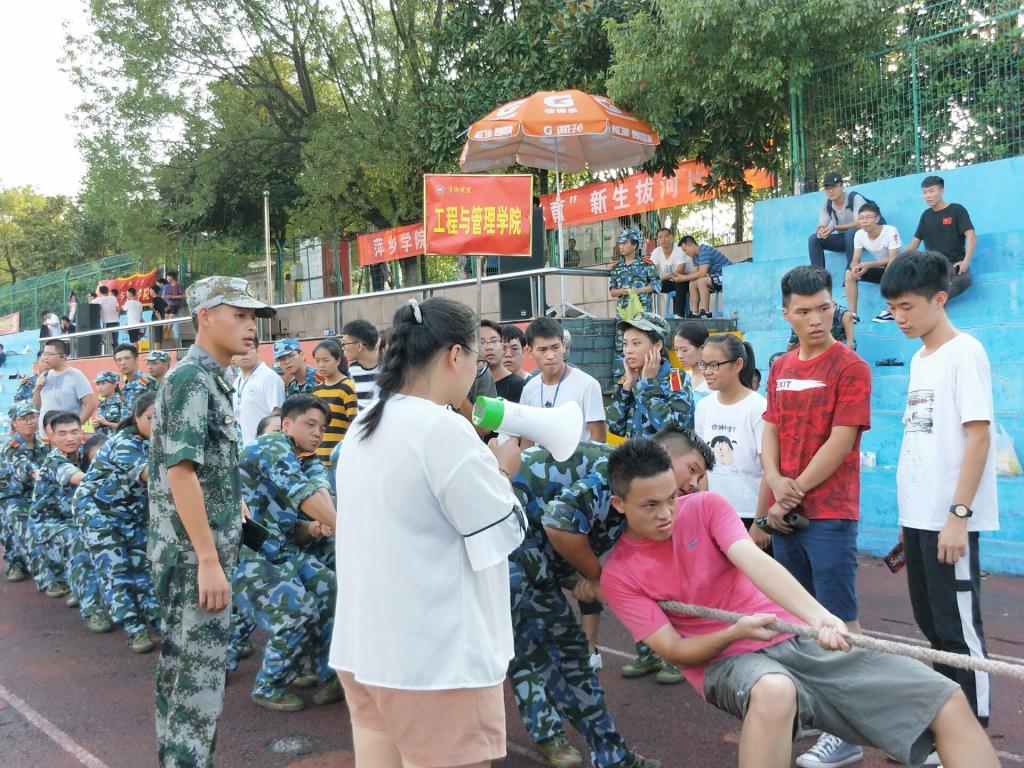 为丰富2018级新生的精神文化,磨砺新生的意志,发扬团队精神、增强凝聚力。萍乡学院举行了第二届“阳光体育”新生拔河比赛,工程与管理学院经过激烈的层层角逐,终于来到了新生拔河比赛的决赛阶段。对战材料与化学工程学院。