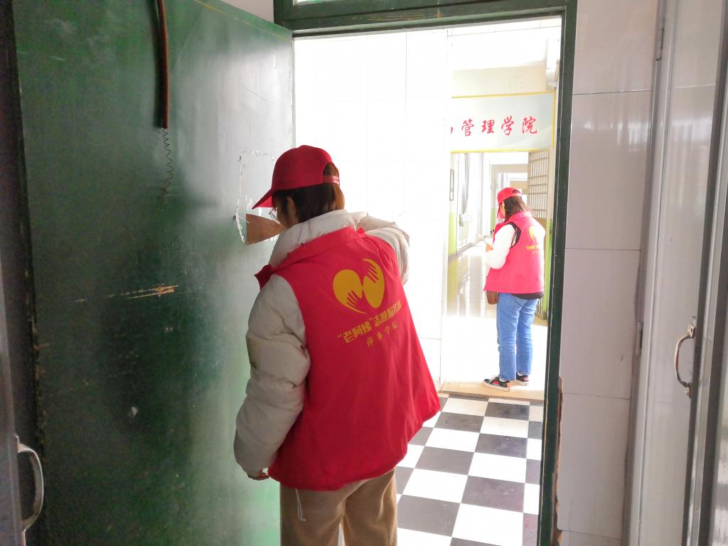 为培养学生的动手能力,美化校园环境,老阿姨志愿服务团于2018年12月16日下午三点三十分开展了清理英华楼废弃小广告的环保活动。