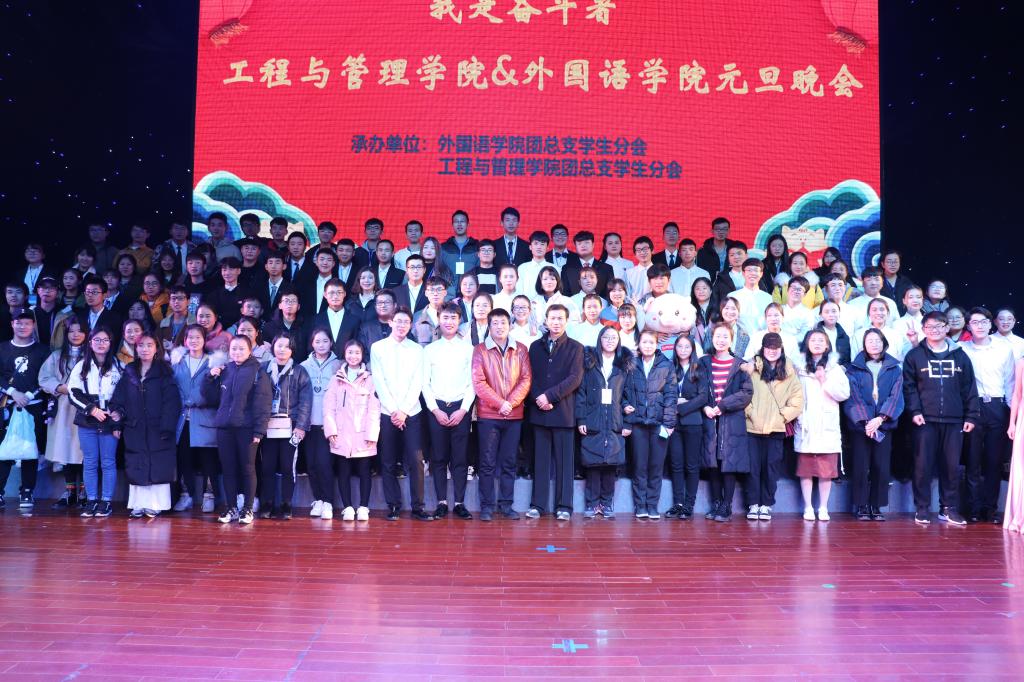 此次元旦晚会,不仅使同学们的集体精神得到激发,为崭新的大学生活描下绚丽的一笔,还大大增强了工程与管理学院与外国语学院的兄弟情谊,为日后两院的交流合作打下了坚实的基础。