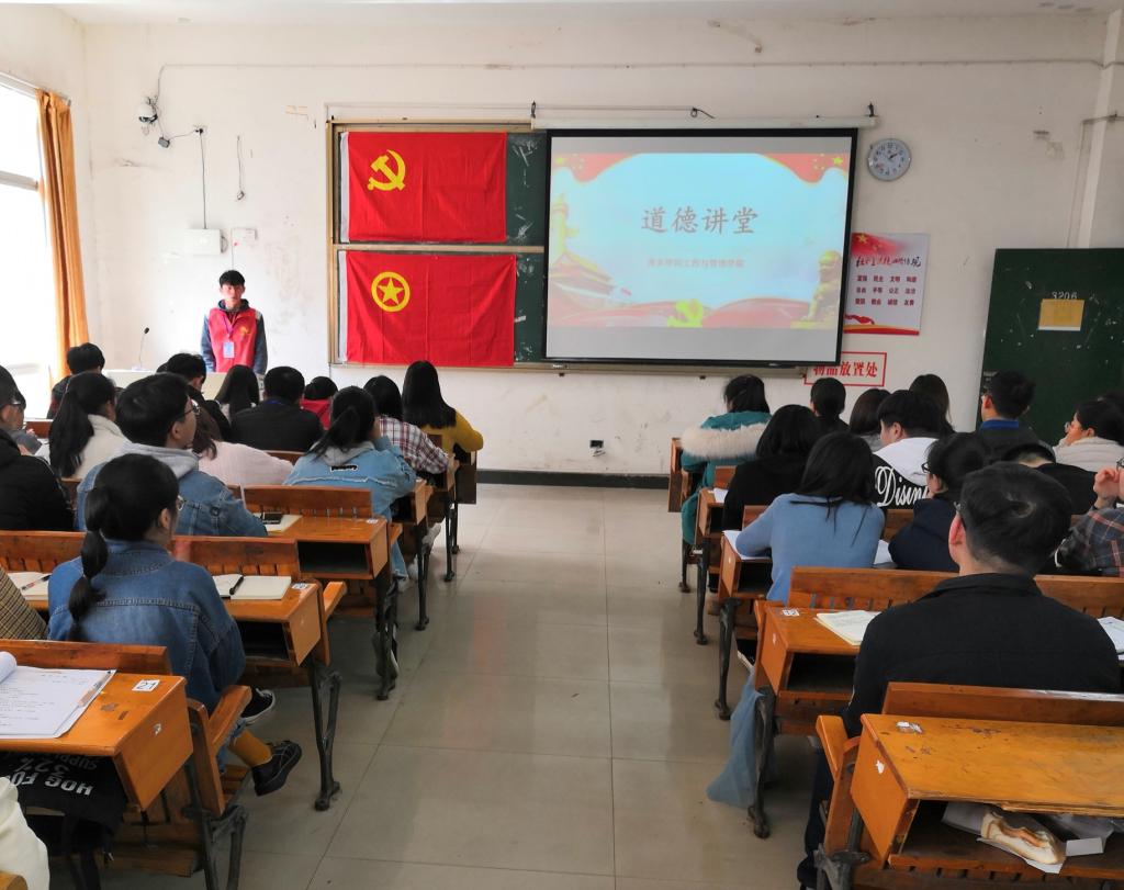 为进一步扩展学校本科评估工作内容,提高广大学生的道德修养意识。工程与管理学院2019年3月12日于英华楼3206举办了道德讲堂活动。出席本次活动的有工程与管理学院党总支副书记汤中友,18级辅导员徐洁老师。本次讲堂由老阿姨志愿服务团副团长万梓言主持。