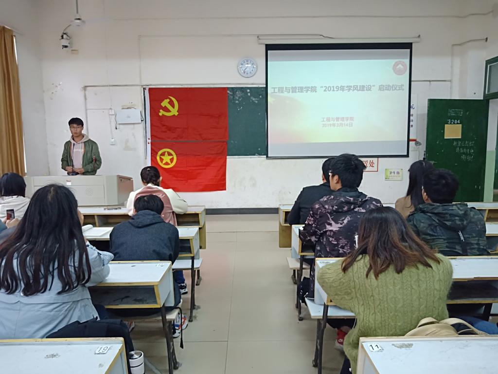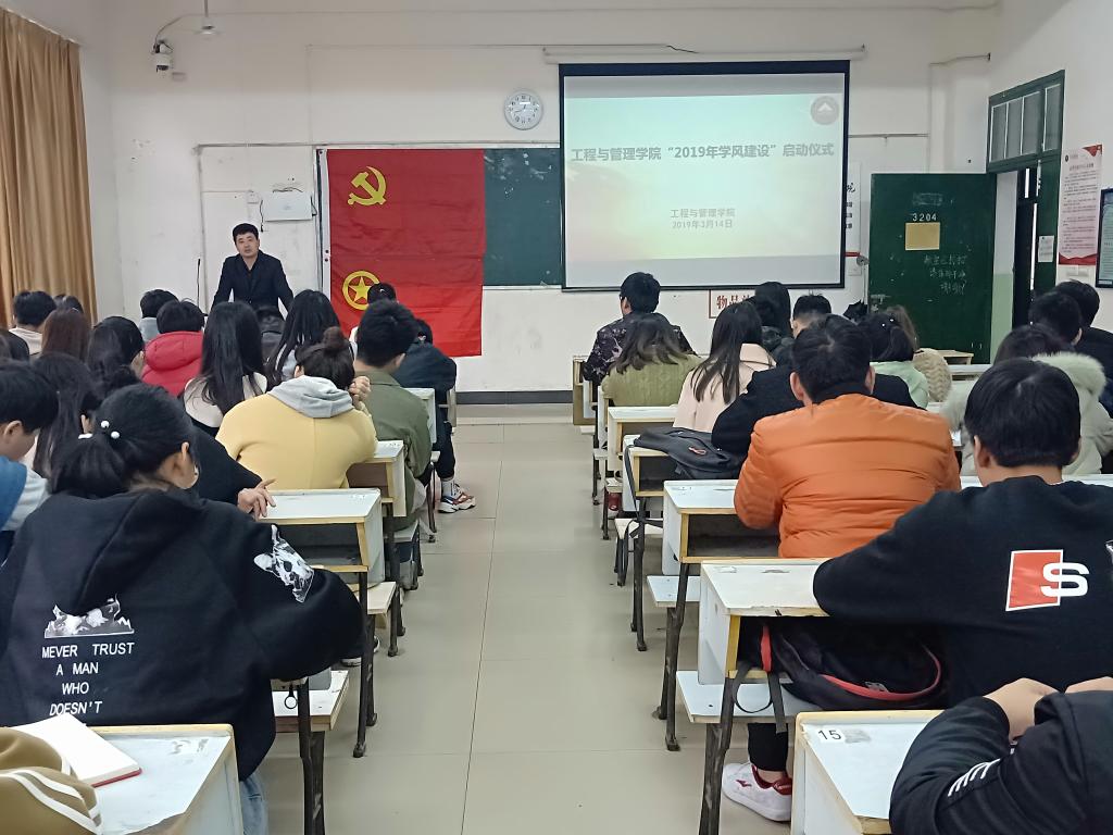 为促进萍乡学院2019年本科教学评估,为了营造良好的学风,工程与管理学院特于2019年3月14日中午12点30分在英华楼3204隆重举行“2019学风建设”动员大会。出席本次会议的嘉宾有工程与管理学院党总支副书记汤中友,辅导员朱婧。本次会议由工程与管理学院团总支学生分会主席周鹏主持。
