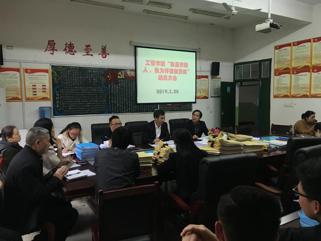 为更好地完成2019年本科教学工作合格评估,工程与管理学院于3月28日在英华楼3229会议室召开“我是萍院人,我为评建做贡献”承诺活动,工管学院全体教职工参加本次会议,会议由李良松院长主持。