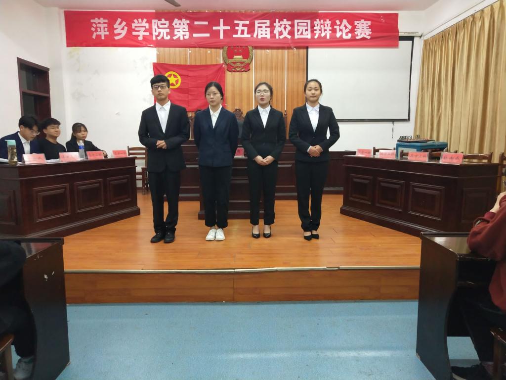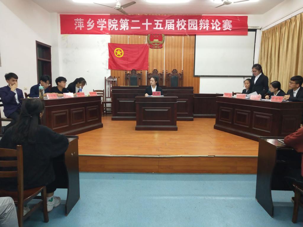 为萍乡学院第二十五届辩论赛作准备,文学院和工程与管理学院于4月28日晚七点在模拟法庭开展友谊辩论赛。文学院为正方代表队,所持观点为“在校大学生创业利大于弊”,工程与管理学院为反方代表队,所持观点为“在校大学生创业弊大于利”。