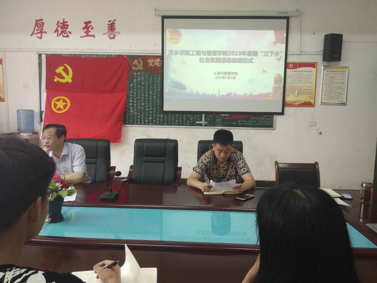7月4日上午,工程与管理学院暑期“三下乡”社会实践活动启动仪式于英华楼3229顺利举行。参加本次会议的老师有工程与管理学院党总支书记黄文华,党总支副书记汤中友,辅导员徐洁。工程与管理团总支副书记万梓言,吴继伟,徐波蓝等九名三下乡的同学聆听了本次会议。