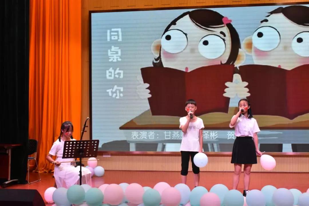 一首洋溢着青春懵懂的《同桌的你》拉开了本次文艺汇演的序幕。甘燕鹏、贺佳欣、甘泽彬三位支教班的学生小小年纪把这种年少时朦胧的感情表现的淋漓精致,精彩的表演让人拍手叫好。