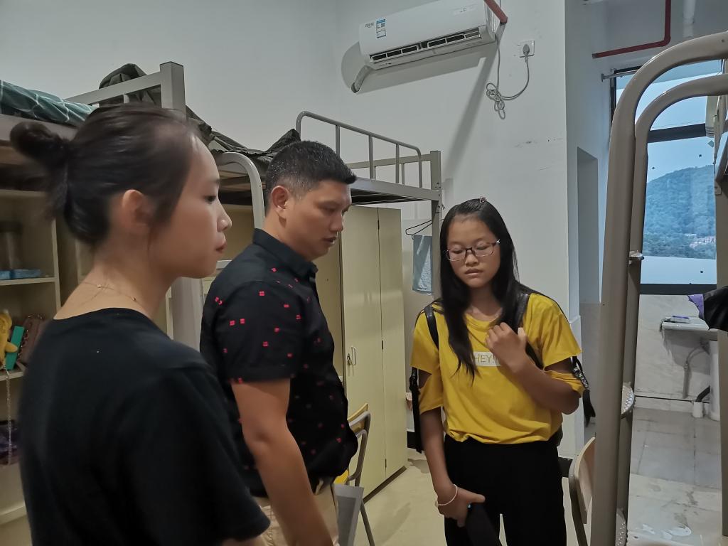 在了解详细的宿舍分布情况后,我院领导老师们逐个走访宿舍。通过交谈,老师们了解了新生们对学校的印象和初来新环境的适应情况。在关心新生宿舍生活的同时,老师们也不忘提醒新生们注意寝室整洁卫生和寝室物品安全使用问题。对于新生们提出来的疑惑,老师们都耐心解答。