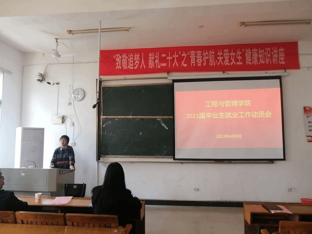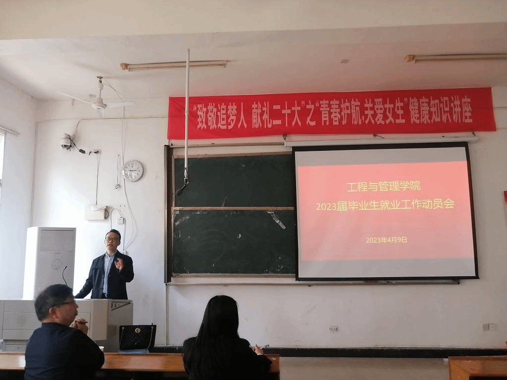 为进一步加强毕业生对就业形势的认识,增强就业观念,提高自身竞争能力,4月9日上午,工程与管理学院在英华楼3206召开2023届毕业生就业动员大会,学院院长陈虹、党委副书记彭友花、党委副书记汤中友、学工科长肖可成出席本次大会。