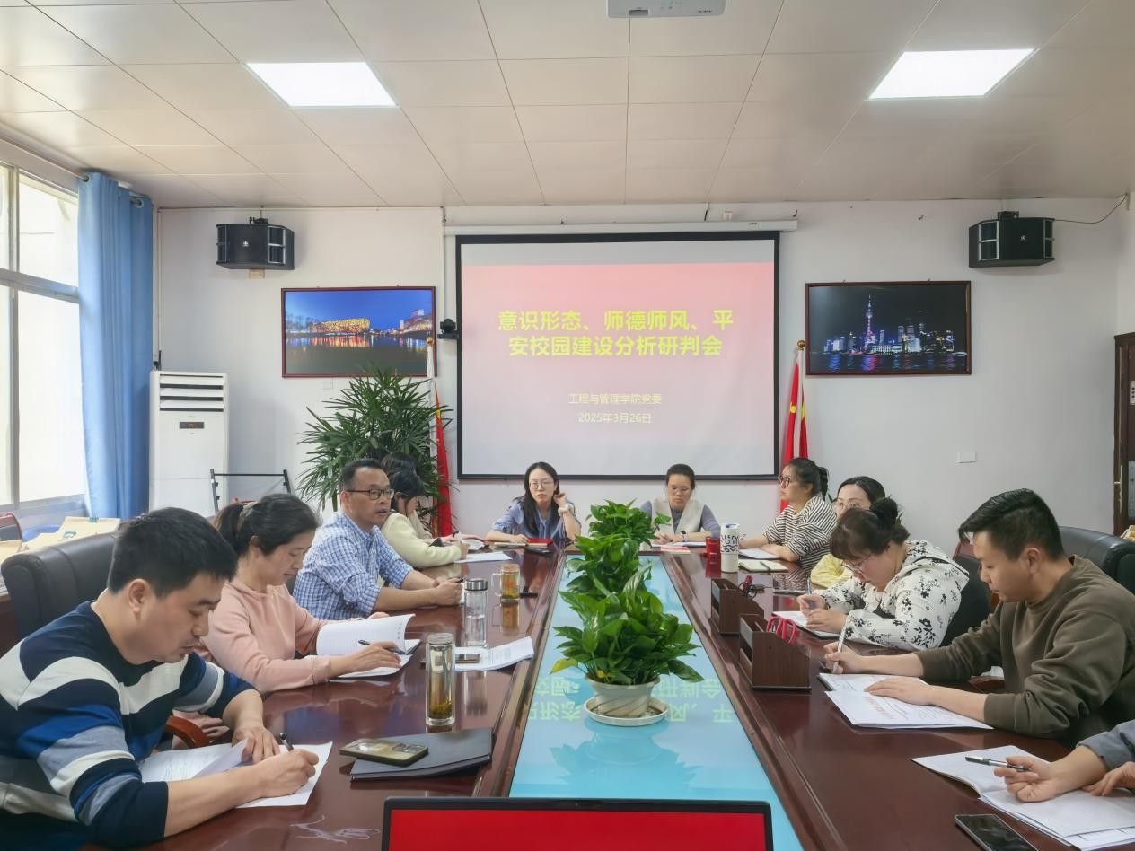3月26日下午,工程与管理学院召开意识形态、师德师风、平安校园建设分析研判会,会议由党委书记彭友花主持,全体院领导、辅导员、学业导师、教研室主任参会。