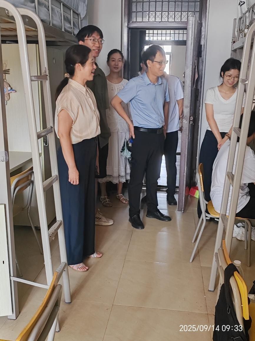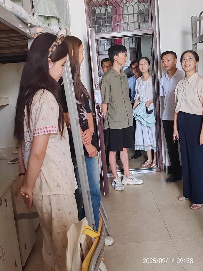 9月14日,是我校2025级新生报到的第二天。为深入了解新生入住寝室情况,引导新生尽快适应大学环境,工程与管理学院院长陈虹带领学院领导班子全体成员、新生辅导员及班主任一行,深入学院新生所在宿舍楼栋,亲切看望来自全国各地的新同学,为他们送去学院的关心与温暖。