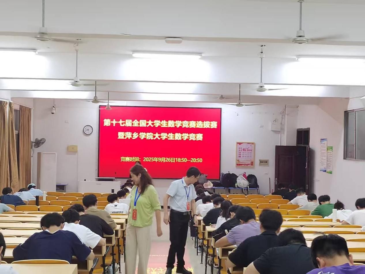 2025年萍乡学院大学生数学竞赛已于9月26日晚在英华楼3106、3206、3207教室举行。共有来自工程与管理学院、材料与化学工程学院、机械电子工程学院、信息与计算机学院、商学院的160余名学生参加比赛。