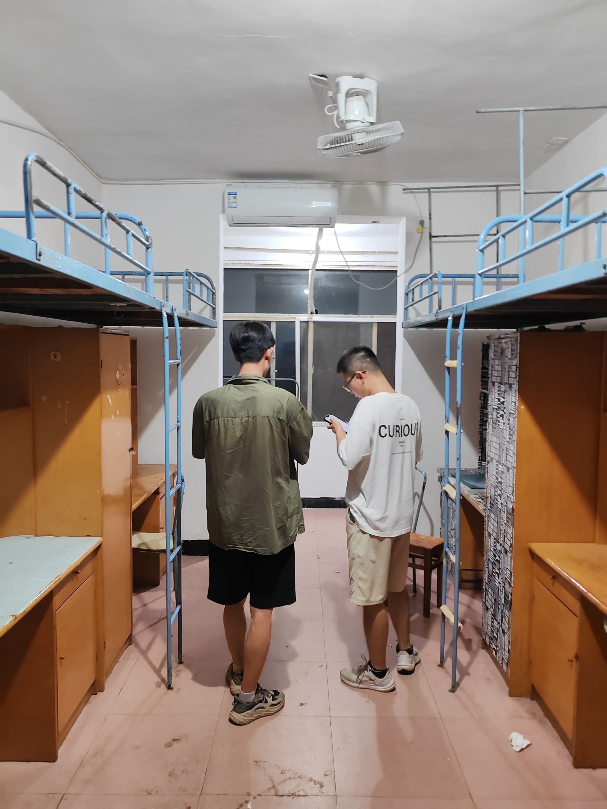 为确保2025级新生拥有安全、整洁、舒适的住宿环境,以崭新面貌迎接大学生活,9月11日下午,工程与管理学院新生班主任李志君、张勇和杨丰宇老师,对8栋新生宿舍进行了一次全面、细致的开学前检查工作。